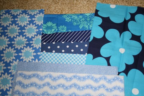 During US Market I left a comment on Amities blog and they sent me a little bundle of blue pieces of fabrcis.............especially love the one on the left.............thanks so much they are lovely fabrics............
